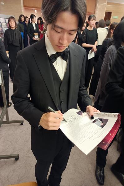 今日、紀尾井ホールで行なわれた、東京六大学オーケストラ連盟第14回合同演奏会に行ってきました。 ![]() 紀尾井ホールは本当に久しぶりで多分、2006年9月に行なわれた2003年の浜松国際ピアノコンクール第5位の鈴木弘尚さんのピアノリサイタル以来だと思います。 ![]() 去年の12月28日にすみだトリフォニーホールで行なわれた、明治大学オーケストラでバイオリンパートを担当していた当教室の大学生の門下生のお友達が、今日、東京六大学オーケストラ連盟第14回合同演奏会に出演されるとのことで四ッ谷に向かいました。 しかもなんとコンサートマスターを務めていました。 私の知っている彼ではありませんでした。 堂々とコンサートマスターを務めていました。 前半はシベリウス 交響詩フィンランディア 交響曲第7番 後半はブラームス 交響曲第2番 というプログラムでした。 個人的にはブラームスが良かったと思いました。 ちょうど一週間前、サントリーホールでアンドレイ・ボレイコ指揮、ポーランド国立ワルシャワフィルハーモニー管弦楽団と2005年のショパンコンクールで史上初の完全優勝されたポーランド人ピアニスト、ラファウ・ブレハッチの演奏会で、後半のプログラムがブラームス交響曲第2番ということで同じ曲でした。 東京六大学オーケストラの皆さんと指揮者の情熱、熱量、ひたむきさは、世界的人気と高い評価を確立しているヨーロッパの名門オーケストラ、名門オーケストラの音楽監督、芸術監督の指揮者にも負けないものでした。 指揮者の方はどこかで見たことあるなと思っていたのですがユベントスフィルハーモニーを結成とプログラムに書いてあり、コロナ前、多分2018年5月の4日か5日に東京国際フォーラムの地下1階か2階だったと思いますが、ラ・フォル・ジュルネでユベントスフィルハーモニーを指揮していた方だったと思い出しました。 コンサートマスターの佇まいも立派なものでポーランド国立ワルシャワフィルハーモニー管弦楽団のコンサートミストレスの人気バイオリニスト、マリアさんにも勝るとも劣らない、クールで知的なコンサートマスターでした。 当教室の門下生のお友達は直接の門下生ではありませんが、感慨深いものがありました。 終演後、コンサートマスターと面会させていただきました。 ![]() ![]() ![]() ![]() 素晴らしい演奏会をありがとうございました。 |