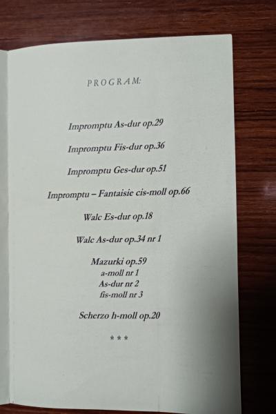 初めてポーランドに行った2004年8月、ジェラゾヴァ・ヴォラのショパンの生家を訪れたのは8月22日、日曜日でした。 その日はショパンの生家で午前11時から演奏会がありました。 ![]() ![]() 演奏者はなんと1975年のショパンコンクール第2位、ディーナ・ヨッフェさんでした。 ![]() 日本でも愛知県の愛知県立芸術大学や明和高校で2003年以前まで教えていらっしゃいました。 権威のある国際コンクールの審査員をされ、近年ではポーランドワルシャワのショパンコンクールの審査員をされています。(2015年、2021年) ショパンの生家のチケットです。 当時ポーランドはEUにも加入して間もないときでした。チケット代が6ズウォーティなので当時確か1ズウォーティが33円くらいでしたのでなんと200円くらい!ディーナ・ヨッフェさんの演奏会もあるのに信じられない。 ![]() ![]() ![]() プログラムです。 ![]() 即興曲全曲 ワルツOp.18 ワルツOp.34ー1 マズルカOp.59 スケルツォOp.20 というショパンの名曲ばかりの贅沢なプログラムでした。 ショパンの生家での演奏会は実際、演奏しているところはなかなか見えませんが、もれてくる音を楽しむ感じの演奏会です。 素晴らしい響き、素晴らしいフレーズの歌い方で流麗な演奏だったのを記憶しています。 どのようなフォームなのか。やはり弾いている姿を見たかったです。 演奏会終了後、ディーナ・ヨッフェさんからサインをいただきました。 ![]() ![]() あれから今年の8月で20年。 20年経ったことが信じられません。 ![]() ![]() ピアノレッスンのご案内 子供から大人の方、お年寄りの方まで、人生が豊かになり、脳のトレーニングにもなるピアノ ピアノを通じて論理的思考や課題解決までやり遂げることなど、受験勉強にも役に立ち、生きる力がつくと言われています。 今年中に入会された方は入会金、設備費は無料です。 入会希望の方、ご興味のある方は、体験レッスンへお越しください。 当教室のホームページのお問い合わせから、またはお電話でお申し込みください。 みなさまとお会いできることを楽しみにしております。 |