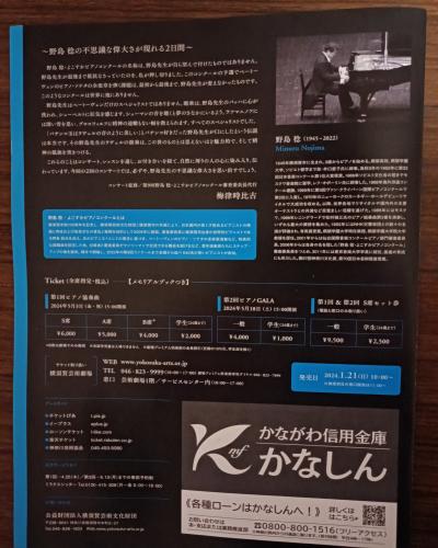 来月5月3日、18日に野島稔メモリアル・コンサートが横須賀芸術劇場大劇場で開催されます。横須賀市出身で戦後の世界に誇る日本を代表する偉大なピアニスト、教育者 |