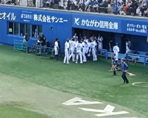 昨日、4月20日、土曜日、昼1時プレイボール、横須賀スタジアムで行われたイースタンリーグ、横浜DeNAベイスターズVS読売ジャイアンツに行ってきました。 筒香嘉智選手が復帰入団会見から初めての実戦でした。 朝8時半に横須賀スタジアムに到着し列びました。 係員の方にお聞きしたら130番目くらいです。とのことでした。 ![]() ![]() 熱心な筒香嘉智選手のファンやベイスターズファンがすでに列んでおられました。 ジャイアンツファンの方々も早い時間から列んでいる方がおられました。 テレビ局、スポーツ新聞各社、報道関係者がたくさんいらっしゃいました。 テレビでお馴染のキャスターの方々もいらっしゃいました。 続々と熱心な筒香嘉智選手のファンやベイスターズファンが列び、10時過ぎには大変な人数になっていました。 予定より早くチケット販売、開門してくださいました。 ![]() ![]() 今回は筒香嘉智選手を見るために三塁側に座りました。 ![]() ジャイアンツのバッティング練習、グランド整備、シートノック ![]() ベイスターズのシートノック ![]() 筒香嘉智選手がベンチに登場しました ![]() ベイスターズのシートノックの後、筒香嘉智選手とトレーナーさん?でウォーミングアップが始まりました ![]() 筒香嘉智選手は4番指名打者でした ![]() 試合は1時にプレイボール ベイスターズは後攻でした。 ベイスターズのピッチャーは石田投手 ジャイアンツのピッチャーはメンデス投手 多くのファンが集まり立ち見も溢れていたせいか、一回終了後、外野席を開放します。とアナウンスがありました。 ![]() 筒香嘉智選手ですが、3打席立ちました。 1打席目、デッドボール 2打席目、三振 3打席目、センター前ヒット、打点1 でした。 ネクストサークルでの筒香嘉智選手(3打席目の直前) ![]() 1打席目デッドボールのときに観客はメンデス投手に不満の声を挙げていました 1打席目のデッドボールの瞬間です ![]() ![]() 3打席目はコンパクトに振り、キレイなセンター前ヒットでした。 ![]() ![]() ![]() ![]() 待望のヒットで横須賀スタジアムは大歓声でした。 ![]() 7回に入る前にトイレに行きました。出て、そして下を見たら筒香嘉智がDOCKに帰っていく姿をみました。 ![]() ![]() とにかく筒香嘉智選手の打席のときには自然に筒香嘉智選手の応援歌の合唱がおきました。 ![]() 10人くらいの応援団のような集団が歌い出すと自然と合唱や手拍子がおきました。 他の選手の応援歌も同じようでした。 トランペットや太鼓や笛がなく、合唱のみでしたが、これはこれで素晴らしいもので、球場全体が素晴らしい空間でした。 ベイスターズ、ジャイアンツの選手の方々も懸命にプレーされ大変楽しめました。 試合は5対1でベイスターズが勝利しました。 ![]() 筒香嘉智選手のファンやベイスターズファンは満足の1日でした。 ![]() ![]() 筒香嘉智選手の調整が上手くいくことを願ってます。 |