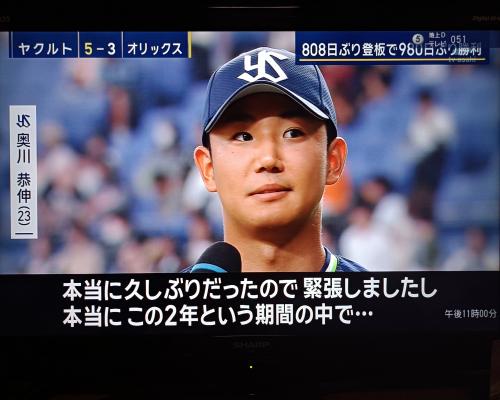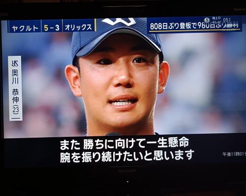 今日6月14日、プロ野球交流戦、京セラドームで行われたオリックス・バファローズVS東京ヤクルトスワローズでヤクルトの奥川恭伸投手(23)が5回7安打1失点で、980日ぶりの白星を挙げました。 |