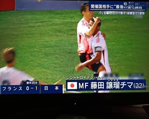 パリオリンピック直前、サッカー∪23オリンピック日本代表が開催国、サッカーフランスオリンピック代表と親善試合が行われ、引き分けました。藤田譲瑠チマ選手の先制ゴール! |