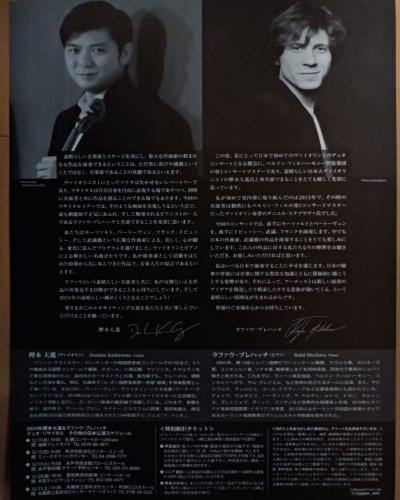 奇跡のデュオ!!樫本大進さんとラファウ・ブレハッチさんのデュオリサイタルのフライヤーが届きました!(12月14日、土曜日、ミューザ川崎 12月19日、木曜日、サントリーホール) |