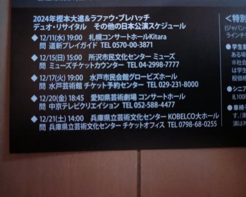 奇跡のデュオ!!樫本大進さんとラファウ・ブレハッチさんのデュオリサイタルのフライヤーが届きました!(12月14日、土曜日、ミューザ川崎 12月19日、木曜日、サントリーホール) ![]() ![]() 2024年12月14日、土曜日19時開演 ミューザ川崎シンフォニーホール 2024年12月19日、木曜日19時開演 サントリーホール プログラム モーツァルト ヴァイオリンソナタ第17番K.296 ベートーヴェン ヴァイオリンソナタ第7番Op.30−2 ドビュッシー ヴァイオリンソナタ 武満徹 悲歌 フランク ヴァイオリンソナタFWV8 S席 12000円 A席 9000円 B席 7000円 C席 5000円 ジャパン・アーツぴあオンラインチケット8月31日、土曜日、10時から 9月7日、土曜日、10時から発売 ジャパン・アーツぴあ0570−00−1212 神奈川芸術協会045−453−5080 ミューザ川崎シンフォニーホール044−520−0200 サントリーホールチケットセンター0570−55−0017 チケットぴあ Pコード 273−184(川崎) 273−386(東京) イープラス ローソンチケット Lコード 31519(川崎) 35166(東京) フリッツ・クライスラー、ロン=ティボーの国際コンクールでの優勝など、5つの権威ある国際コンクールで優勝。世界最高のオーケストラ、ベルリン・フィル第1コンサートマスターの樫本大進さん と ショパン国際ピアノコンクール優勝、マズルカ賞、ポロネーズ賞、ソナタ賞、コンチェルト賞、聴衆賞の全てを受賞と史上初の完全制覇。世界最高のショパン弾きのラファウ・ブレハッチさん 夢の共演!!奇跡のデュオ!! その他の日本公演スケジュール ![]() 4ヶ月2週間でミューザ川崎公演。4ヶ月19日でサントリーホール。 注目のデュオリサイタルです! ピアノをやっている勉強している子どもから大人まで全ての方々、ヴァイオリンをやっている勉強している子どもから大人まで全ての方々、必聴必見です! |