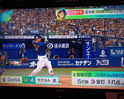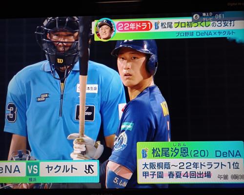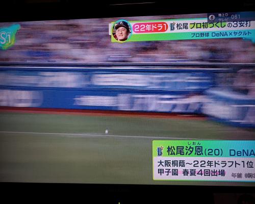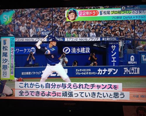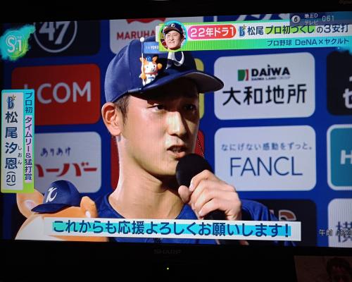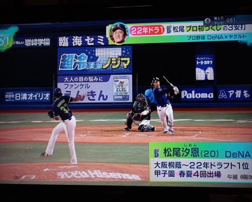 松尾汐恩選手、プロ初の3安打猛打賞、プロ初打点!!(10日、東京ヤクルトスワローズ戦、横浜スタジアム) |