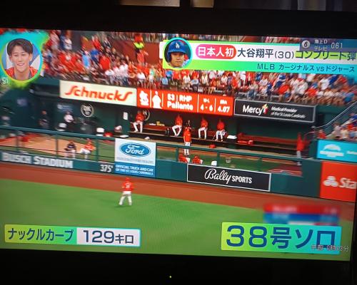 大谷翔平選手、38号ホームラン!!(カージナルス戦、第3打席) |
