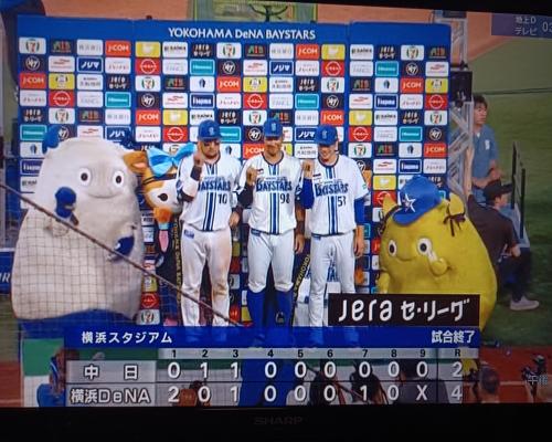 横浜DeNAベイスターズが防御率0点台の高橋宏斗投手から勝利!!(20日、中日ドラゴンズ戦、横浜スタジアム) 1回裏 2アウト2塁 牧秀悟選手 ![]() ![]() 三遊間をやぶり ![]() 横浜DeNAベイスターズ先制! ![]() 中日ドラゴンズのピッチャーは防御率0点台の高橋宏斗投手 ![]() 3回裏1アウト満塁 京田選手 ![]() ![]() レフト前へ ![]() タイムリーヒット ![]() 7回裏 2アウト2塁1塁 戸柱捕手。久々のスタメンマスク ![]() センター前 ![]() ![]() オースティン選手が2塁から激走、本塁クロスプレイ!!セーフ!!上手いスライディング!!素晴らしい気迫!! ![]() 戸柱選手のタイムリーヒット!! ![]() 試合は横浜DeNAベイスターズが4−2で中日ドラゴンズに勝利しました。 ヒーローインタビュー お立ち台!! ![]() 中川颯投手 3勝目!! ![]() 京田選手 タイムリー!! ![]() 戸柱選手 猛打賞!!タイムリー!!好リード!! ![]() ![]() 戸柱選手が久々のスタメンマスクで大活躍でした。 |