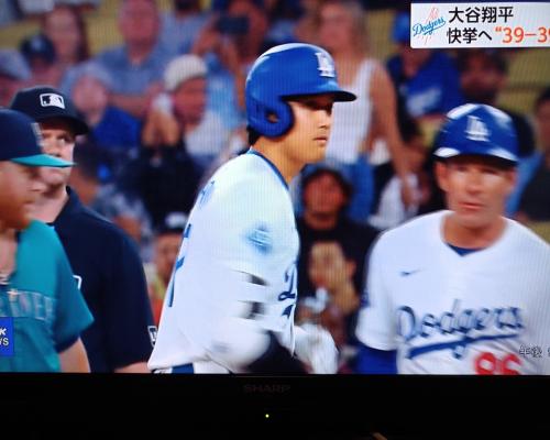 大谷翔平選手、盗塁成功で39盗塁!!(21日、マリナーズ戦 ロサンゼルス) |