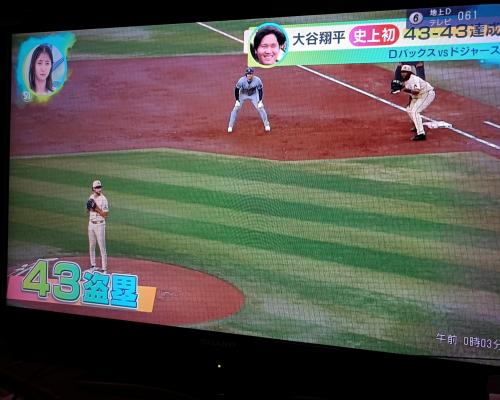 大谷翔平選手、43盗塁!!デッドボールで出塁から盗塁(ダイヤモンドバックス戦、第2打席目) |