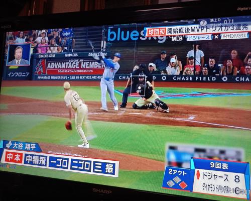大谷翔平選手、ナショナルリーグ打点ランキングで1位、オズナ選手に並ぶ。(ダイヤモンドバックス戦) |