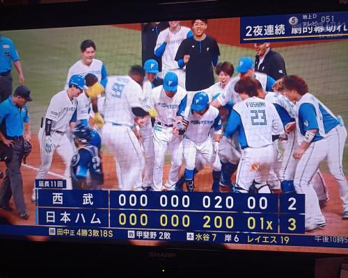 レイエス選手、サヨナラホームラン!!(11日、埼玉西武ライオンズ戦 エスコンフィールドHOKKAIDO) |