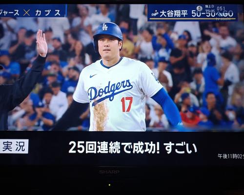大谷翔平選手、盗塁成功!!48盗塁!!47-48!!(11日、カブス戦 ドジャースタジアム) 第2打席 フォアボール ![]() ランナー1塁、大谷翔平選手スタート!! ![]() ![]() 盗塁成功!!48盗塁目!! ![]() ![]() なんと25回連続盗塁成功!! ![]() ホームラン47本、盗塁48個 47-48!! |