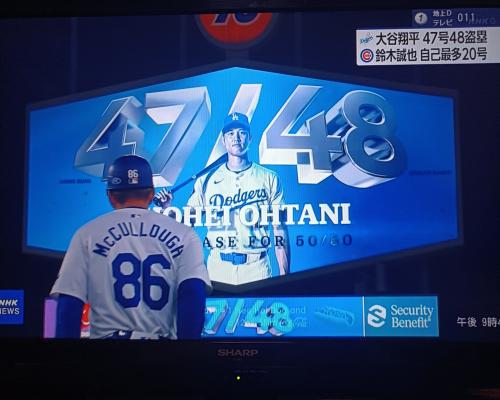 大谷翔平選手、盗塁成功!!48盗塁!!47-48!!(11日、カブス戦 ドジャースタジアム) |