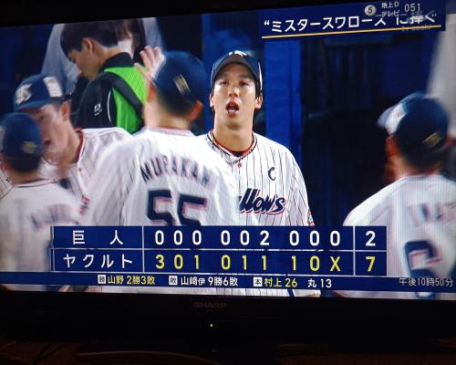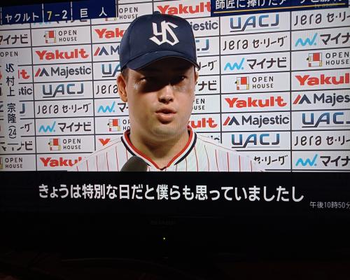 ミスタースワローズに捧げる勝利!村上選手26号2ランホームラン!!(13日、東京読売ジャイアン戦 神宮) ヤクルトが3連勝。ヤクルトは1回裏、村上選手の3ランホームランで先制。3回裏に山田選手がレフト前タイムリーヒット。5回には岩田選手のタイムリーで追加点。投げては、先発・山野投手が8回2失点の快投で今季2勝目。 1回裏、1アウト2塁 村上選手 打った瞬間、ホームランと解るセンターへ大きな当たり ![]() ![]() ![]() バックスクリーン右へ26号特大2ランホームラン!! 3回裏、2アウト2塁 山田哲人選手 ![]() レフト前へ ![]() レフト前ヒット ![]() ![]() タイムリーヒット!! ![]() 先発は山野太一投手、好投! ![]() ![]() 山野太一投手2勝目!! ![]() 試合は東京ヤクルトスワローズが7-2で東京読売ジャイアンに勝利しました。 ヒーローインタビューでの村上選手 ![]() ![]() ミスタースワローズ、青木宣親選手の感謝の言葉でした。 |