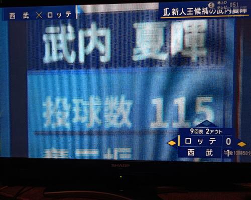 武内夏暉投手(埼玉西武ライオンズ)プロ初完封!!(16日、千葉ロッテマリーンズ ベルーナドーム) 先発はドラフト1位 武内夏暉投手 ![]() 9回2アウト1塁2塁 ここまで球数115球 ![]() ![]() ![]() ![]() 最後の打者を打ち取り ![]() 武内夏暉投手、プロ初完封!!8勝目!! 試合は埼玉西武ライオンズが1−0で千葉ロッテマリーンズに勝利しました。 |