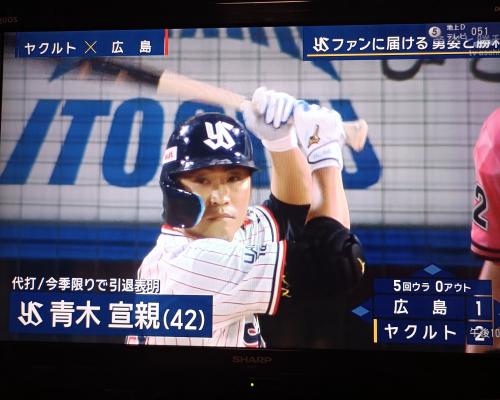 今季限りで引退される青木宣親選手が代打でレフト前ヒット!!(19日、広島東洋カープ戦 神宮) |