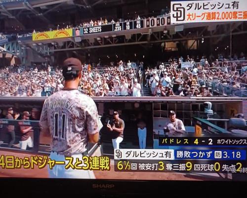 ダルビッシュ投手、快投!!メジャーリーグ通算2000奪三振!!(23日、ホワイトソックス ペトコ・パーク) |