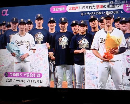 オリックス一筋、安達了一選手、小田裕也選手、T―岡田選手の引退試合(24日、埼玉西武ライオンズ戦 京セラドーム) |