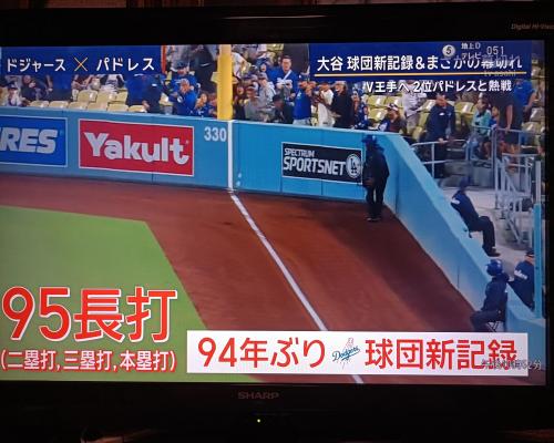 大谷翔平選手、95長打!!94年ぶりドジャース球団新記録(25日、パドレス戦 ドジャースタジアム) |