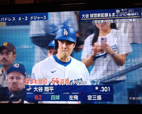 大谷翔平選手、95長打!!94年ぶりドジャース球団新記録(25日、パドレス戦 ドジャースタジアム) 1回、大谷翔平選手 ライト線へ鋭い当たり!! ![]() ![]() ワンバウンドでライトスタンドへ入り、エンタイトルツーベース!! ![]() 今シーズン95長打!!(二塁打、三塁打、本塁打) 94年ぶりドジャースの球団新記録!! ![]() 今日の大谷翔平選手 3打数1安打 打率.301 ホームラン53 盗塁55 試合はパドレスが4-2でドジャースに勝利しました。 |