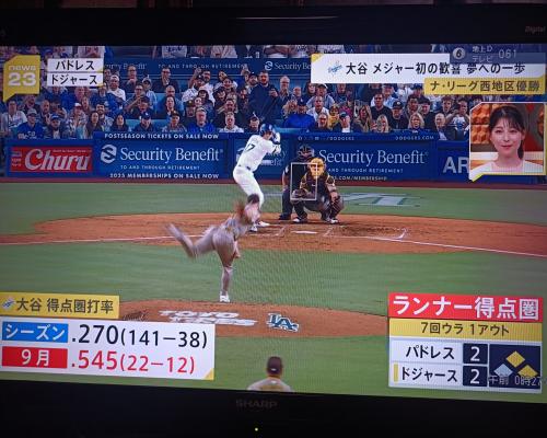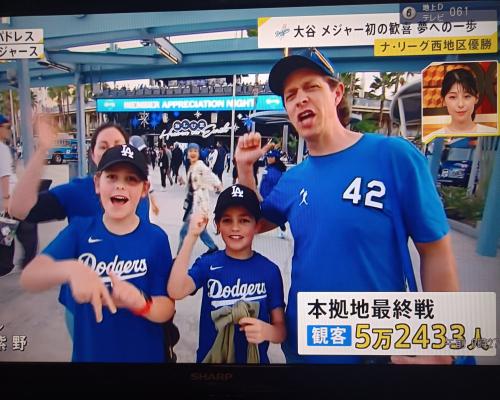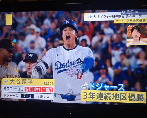 ドジャース3年連続地区優勝!!大谷翔平選手、自身初の地区優勝!!(27日、パドレス戦 ドジャースタジアム) |