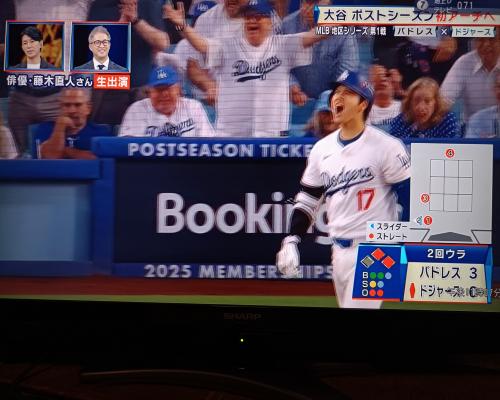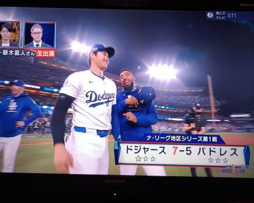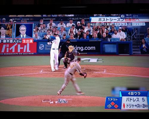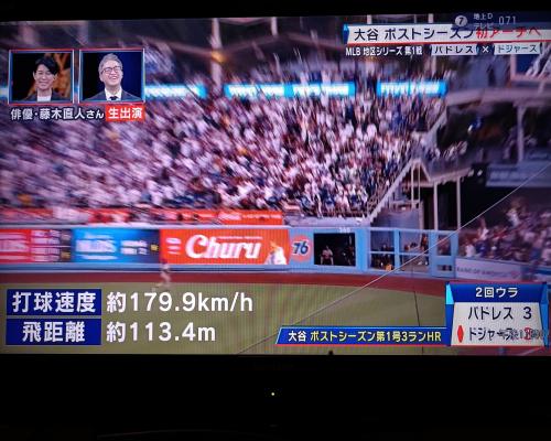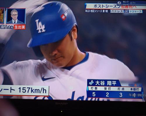 大谷翔平選手、ポストシーズン初ホームラン!!(6日、地区シリーズ第1戦 パドレス戦 ドジャースタジアム) |