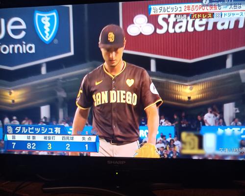 ダルビッシュ投手、快投!!(7日、ナショナル・リーグ地区シリーズ第2戦、ドジャース戦 ドジャースタジアム) |