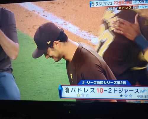 ダルビッシュ投手、快投!!(7日、ナショナル・リーグ地区シリーズ第2戦、ドジャース戦 ドジャースタジアム) ポストシーズン、ナショナル・リーグ地区シリーズ第2戦、パドレスの先発、ダルビッシュ投手 素晴らしいピッチング!! ![]() ![]() ダルビッシュ投手、対ドジャース打線に対し、7回を82球、被安打3、四死球2、失点1と快投!! この試合の勝利投手!! ![]() 試合はパドレスが10−2でドジャースに勝利しました。 ダルビッシュ投手、プレーオフ通算5勝目!! |