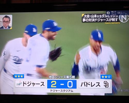 ドジャースがリーグ優勝決定シリーズへ進出!!(12日、地区シリーズ第5戦 ドジャース2-0パドレス ドジャースタジアム) |