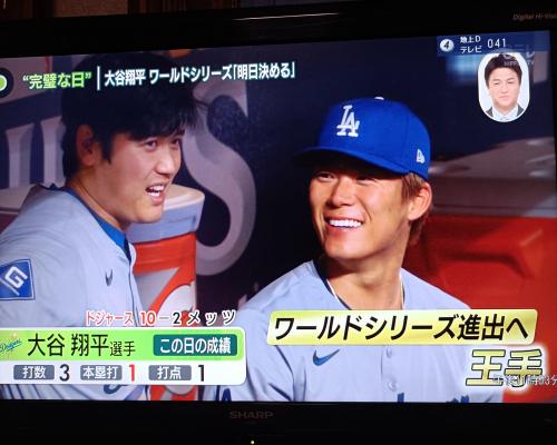 ドジャースがワールドシリーズ進出に王手!!(18日、メッツ戦 シティ・フィールド) 1回 1番、大谷翔平選手の先頭打者ホームラン!! ![]() ![]() ![]() 右中間へ豪快な先頭打者ホームラン!! ![]() ![]() 日本人初のポストシーズンでの先頭打者ホームラン 先発は山本由伸投手 ![]() 4者連続奪三振!! ![]() ![]() 山本由伸投手、4者連続奪三振を含む、8奪三振!! 6回表、1アウト、ランナー1塁にフォアボールの大谷翔平選手。次のバッターバッターはベッツ選手 ![]() ベッツ選手、豪快な2ランホームラン!! ![]() ![]() ![]() 試合はドジャースが10−2でメッツに勝利しました。 ドジャースがワールドシリーズ進出へ王手をかけました!! 大谷翔平選手この日、3打数1安打、1ホームラン、3四球、1打点!! |