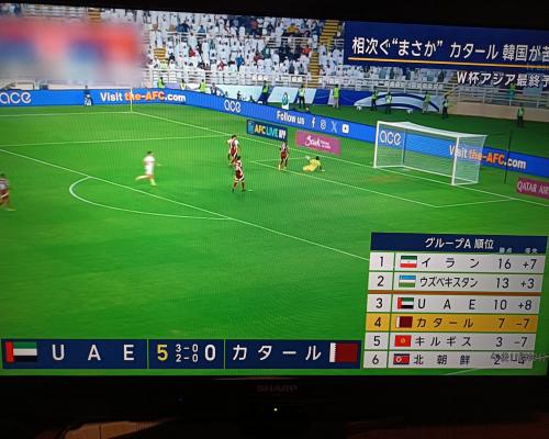 ワールドカップアジア最終予選、各グループの順位 (11月20日、第6戦終了時) グループA ![]() イランが勝ち点16で1位。 ウズベキスタンが勝ち点13で2位。 なんと20日、アジアカップ優勝のカタールがUAEに0−5で敗退… UAEが勝ち点10となり3位。 カタールは勝ち点7で4位。 2位争い、3位争いがウズベキスタン、UAEとなりそうで、カタールは苦しくなってきました。 グループB ![]() 韓国が勝ち点14で1位 イラク勝ち点11、ヨルダン勝ち点9と続きます。 20日、韓国がパレスチナと意外にも引き分けで勝ち点1を積み上げ、勝ち点14 韓国の優位はおそらく変わらないでしょう。2位争いはイラク、ヨルダンの争いになりそうです。 グループC ![]() サムライブルーの独走状態。 20日、インドネシアがなんとサウジアラビアに勝利!!勝ち点3を積み上げ勝ち点6!! よって 2位から6位までなんと勝ち点1差 3位から6位はなんとなんと勝ち点6で並んでいます。 2位以下はどうなるか?全く予想ができません。 |