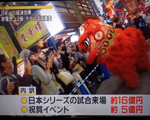 横浜DeNAベイスターズ日本一の横浜市内の経済効果は124億6100万円に上るとの試算 帝国バンクによると、横浜DeNAベイスターズが日本一になったことによる横浜市内の経済効果は124億6100万円に上るとの試算を発表されました。 ![]() ![]() 日本シリーズの最中のチケット購入費や飲食費、宿泊費といった来場者支出を16億900万円、百貨店や地元企業の優勝記念セールは71億2200万円と推計。 明日の11月30日の優勝パレードの人出を30万人と推計され、32億1500万円の効果を見込んでいるそうです。 ![]() ![]() ベイスターズ日本一で家電の売上が2倍、ホテルはほぼ満室。 11月30日のパレードが物凄い事になりそうです。 ベイスターズファンにはたまらない1日になりそうです!! |