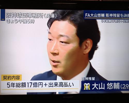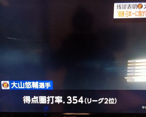 大山悠輔選手、阪神残留表明! 午後5時、阪神球団事務所 大山悠輔選手の残留表明 ![]() ![]() 今シーズンの得点圏打率.354 リーグ2位! ![]() 5年総額17億円+出来高払い という契約内容。 阪神にとって阪神ファンにとって嬉しいニュースでしょう。 |