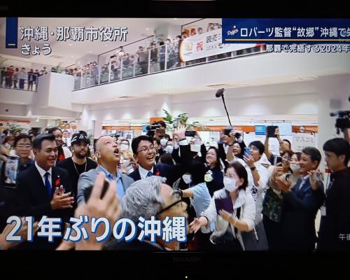 ドジャースのロバーツ監督、故郷の沖縄、那覇市役所で特別栄誉賞を授与!(5日、那覇市役所) 沖縄、那覇市役所 歓迎されるロバーツ監督 ![]() ロバーツ監督、21年ぶりの沖縄 ![]() 那覇市から特別栄誉賞を授与 ![]() ![]() ![]() ![]() ![]() ![]() ![]() ドジャースワールドシリーズ優勝をアメリカ、ロサンゼルスだけでなく、那覇でも優勝を祝え、ロバーツ監督の2024年の旅が完結! |