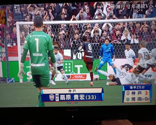 ヴィッセル神戸 J1優勝!!2年連続!(8日、J1リーグ第38節 ヴィッセル神戸3−0湘南ベルマーレ ノエビアスタジアム神戸) |