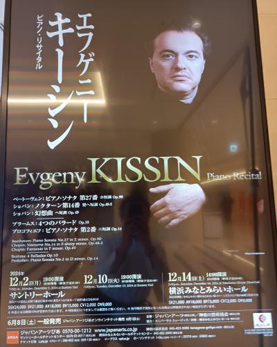 キーシンさんの今回の日本ツアー最終公演を聴きました。 エフゲーニ・キーシン ピアノ・リサイタル 2024年12月14日 横浜みなとみらいホール 完売公演 世界最高の歴史的偉大なピアニスト、エフゲーニ・キーシンさんの今回の日本ツアー最終公演、横浜みなとみらいホールに行ってきました。 エフゲーニ・キーシン ピアノ・リサイタル ![]() 満員御礼の赤いのぼり ![]() エフゲーニ・キーシン ピアノ・リサイタルのフライヤーと完売御礼を知らせる印刷物 ![]() 今回のキーシンさん日本ツアーは2公演、足を運ばせていただきました。 12月10日、サントリーホールと12月14日、横浜みなとみらいホール 10日のサントリーホールは物凄かった。Pブロックの鍵盤の見えない反響板の裏側なのに。 14日の横浜みなとみらいホールは3階席で聴きました。 みなとみらいホールの3階席はピアノソロの場合、音や響きがにじんでしまう、またはボヤケてしまうピアニストが多いのですが、キーシンさんは1音1音、角度をつけて意味を持たせて、静寂から強音まで美しくキチンと素晴らしく音が飛んできました。 ステージからかなり離れている3階席でも近くで聴いているような。すぐそこで演奏しているような。 キーシンさんの出来も、物凄かった10日のサントリーホールよりも横浜みなとみらいホールのほうが良かったのでは。 と思いました。 ただ聴衆の皆さんの盛り上がり方は、横浜みなとみらいホールより10日のサントリーホールのほうが圧倒的で、 横浜みなとみらいホールの聴衆の皆さんは大人しく感じました。 この様子に個人的には少し拍子抜けしました。 これでキーシンさんの今回の日本ツアーは終わりになりました。 これまでのキーシンさんは大体3年ごとくらいに日本に来てくださいます。 ということは、次は2027年に来てくださるのでしょうか。 キーシンさんの演奏会を聴くために、2027年までとりあえず頑張って生きていきたいと思います。 ピアノ教室も頑張ってなんとかしたいと思います。 キーシンさん、物凄い物凄い演奏会をありがとうございました。 |