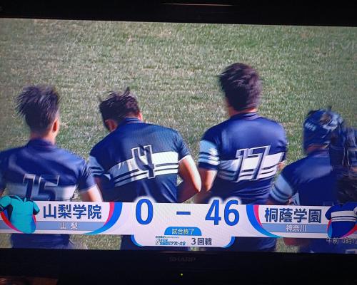 第104回 全国高校ラグビー選手権 3回戦で桐蔭学園が勝利(1日、桐蔭学園46―0山梨学院 花園) 第104回全国高校ラグビー選手権3回戦、桐蔭学園(神奈川)が山梨学院(山梨)に圧勝!! ノーサイドのホイッスル ![]() ![]() ![]() ![]() 桐蔭学園がなんと46―0で山梨学院に勝利しました。 完勝!! 優勝が期待されます!! |