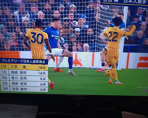 三笘薫選手、ゴール!!プレミアリーグ日本人通算ゴール最多タイ!! (17日、イプスウィッチ−ブライトン) |