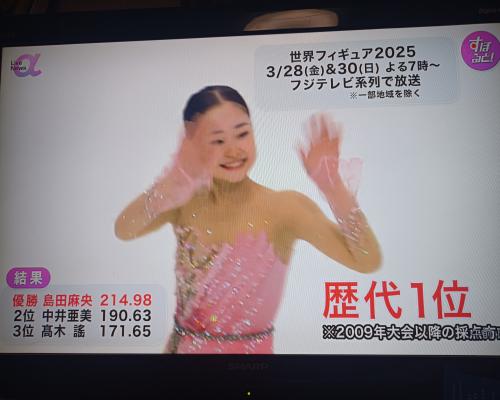 島田麻央選手、優勝!!フィギュアスケートインターハイ 女子フリー 島田麻央選手のトリプルアクセル!! ![]() ![]() 島田麻央選手 ショート 71.82 フリー 143 .16 合計 214.98 歴代1位!! 日本の至宝! 期待のフィギュアスケーターです!! |