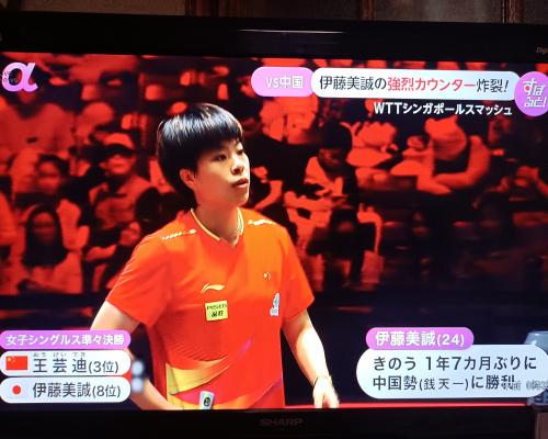 伊藤美誠選手(世界ランキング8位) 、中国の王芸迪選手(世界ランキング3位)に敗れる。伊藤美誠選手1−4王芸迪選手 WTTシンガポールスマッシュ 女子シングル準々決勝 昨日、1年7ヶ月ぶりに中国選手に掌理した伊藤美誠選手。 今日は世界ランキング3位の中国の王芸迪選手との対戦。 ![]() 伊藤美誠選手の素晴らしいカウンター ![]() ![]() 試合は王芸迪選手が4−1で伊藤美誠選手に勝利しました。 |
