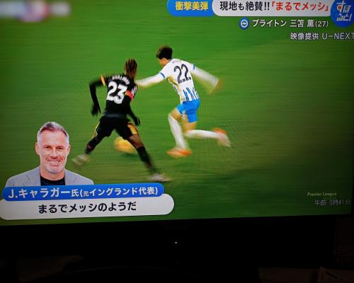 三笘薫選手、スーパートラップからのスーパーゴール!! プレミアリーグ第25節 ブライトン3−1チェルシー アメックススタジアム ![]() 0ー0で迎えた前半27分、自陣ペナルティエリア付近からゴールキーパーのB.フェルブルッヘン(22)のロングパスに三笘薫選手が反応。背後からの難しいパスを華麗なトラップで足元にピタリ!!そのまま相手DFを1人を華麗にかわし右足を振り抜き、ゴール右隅へスーパーゴール!!ゴールキーパーのパスからわずか7秒!!圧巻の速攻にスタジアムは沸き、解説の元イングランド代表のギャラガー氏も まるでメッシのようだ!! と大絶賛!! イギリスBBCも あまりの素晴らしさに息を呑むようだった。 と最大級の賛辞!! ![]() ![]() ![]() ![]() ![]() ![]() ![]() ![]() ![]() ![]() ![]() ![]() ![]() 日本の至宝!! 代表でも期待されます。 ![]() 試合はブライトンが3−1でチェルシーに勝利しました。 |