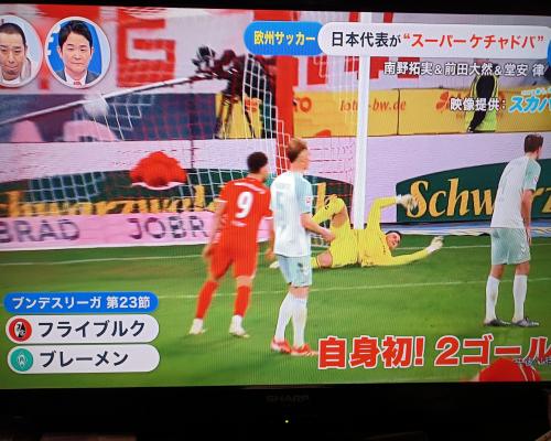 堂安律選手、自身初の2ゴール!!自己最多、8ゴール目 ブンデスリーガ第23節 フライブルグ5−0ブレーメン |