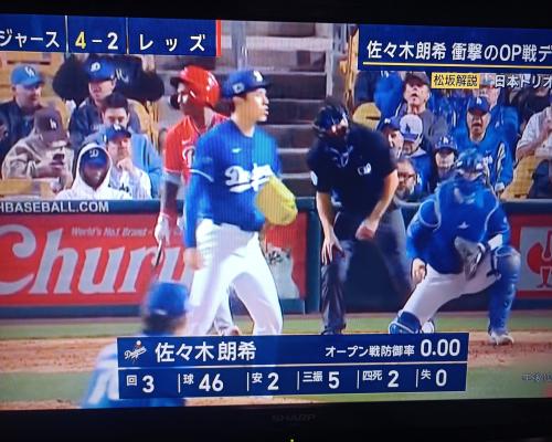 ドジャース佐々木朗希投手、オープン戦初登板で衝撃デビュー!! 3回46球、被安打2、奪三振5、四死球2、失点0 ドジャース4−2レッズ |