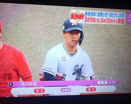 千葉ロッテマリーンズ24年ドラフト1位、西川史礁選手が大活躍!!二本のツーベースヒット!! 6日、千葉マリンスタジアム 本拠地マリンスタジアム初登場の西川選手 ![]() 第1打席、初球を右へ素晴らしい当たり ![]() ツーベースヒット!! ![]() 第3打席、レフトへ素晴らしい当たり!! ![]() ツーベースヒット!! ![]() 西川選手、二本のツーベースヒット!! 試合は千葉ロッテマリーンズが4−0で広島東洋カープに勝利しました。 |