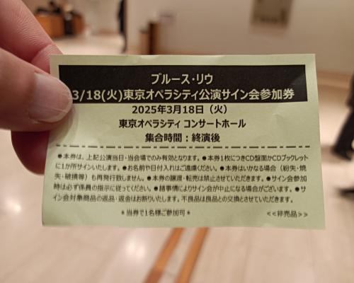 ブルース・リウ ピアノリサイタル終了後のサイン会 長蛇の列 ブルース・リウさんにはたくさんの熱狂的ファンの方々がいらっしゃいます。 ![]() ![]() ![]() ついにブルース・リウさんからサインを頂くことが出来ました。 ![]() ショパンコンクール優勝直後にグラモフォンから出たショパンコンクールの予選を収録されたCD宣伝のフライヤー オペラシティから新宿駅まで歩き、山手線で品川、京急に乗り換え終電で浦賀駅に。 浦賀駅に到着したら大雨でした。 ![]() ![]() 小雨になったのを見計らって、ジョギングで帰宅しました。 |