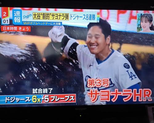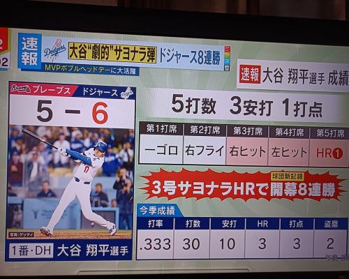 大谷翔平選手、劇的サヨナラホームラン!! ドジャース8連勝 ドジャース6―5ブレーブス 2日、ドジャースタジアム |