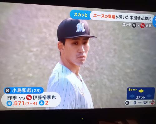小島和哉投手、快投!!今シーズン初勝利!! 8回を無失点ピッチング!! 千葉ロッテマリーンズ1−0で東北楽天ゴールデンイーグルス 5日、千葉マリンスタジアム |