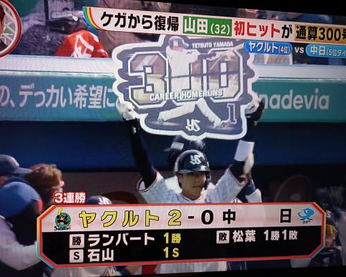 怪我から復帰の山田哲人選手、初ヒットが通算300号ホームラン!! ヤクルト2―0中日 5日、神宮 |