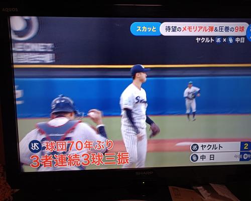 ヤクルト球団70年ぶり、石山 泰稚投手が3者連続3球三振!! ヤクルト2―0中日 5日、神宮 |