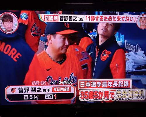菅野智之投手、メジャー初勝利!! 6回途中、1失点の好投!! オリオールズ8-1ロイヤルズ 菅野智之投手、6回途中、被安打5、四死球2、奪三振4、失点1と好投!! ![]() ![]() ![]() 日本人選手最年長記録 35歳5ヶ月で先発初勝利!! |